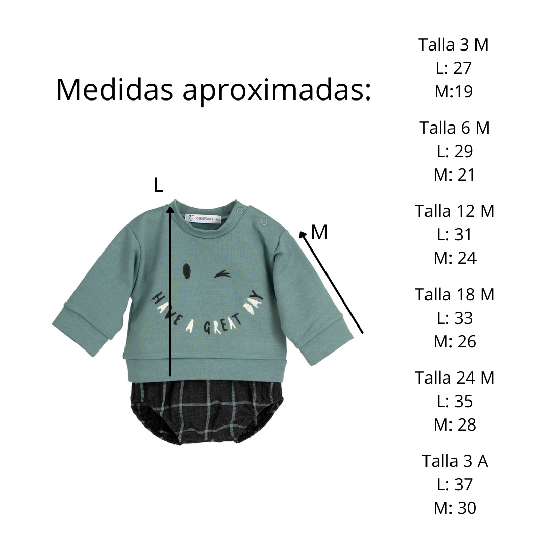 – Pololo de cuadros a juego con goma en cintura y piernas.