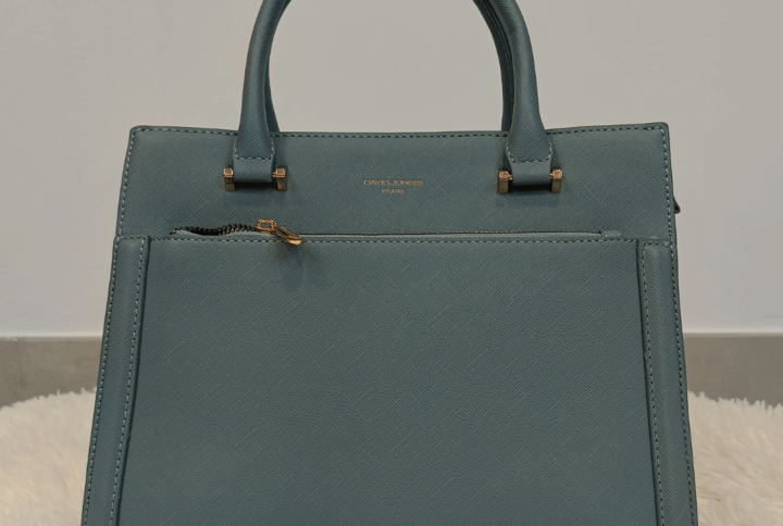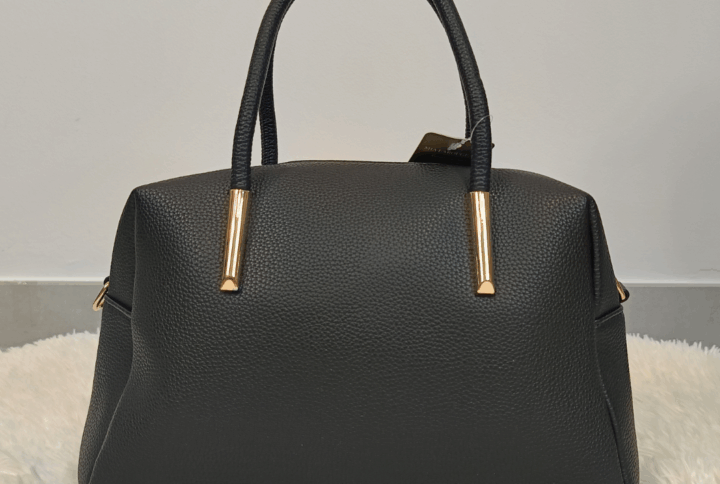Bolso de mano y con colgador en color burdeos, de tamaño mediano y bolsillos interiores. Medidas aprox: alto 21 cm, largo 28 cm, ancho 9 cm.