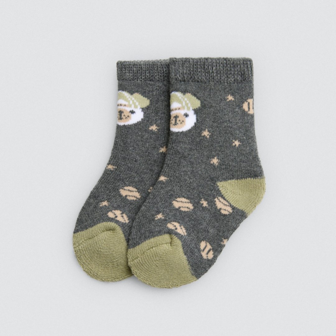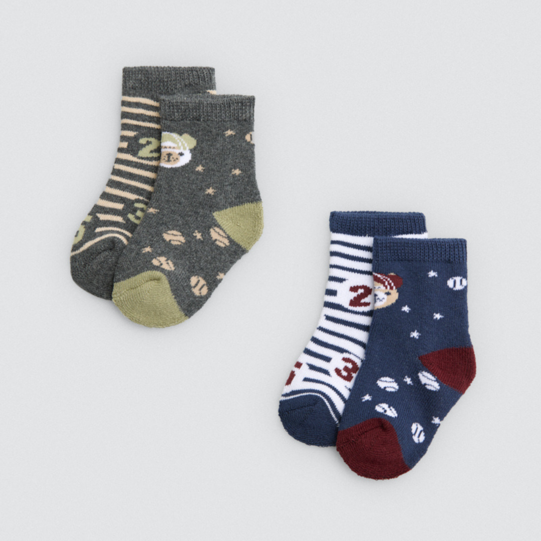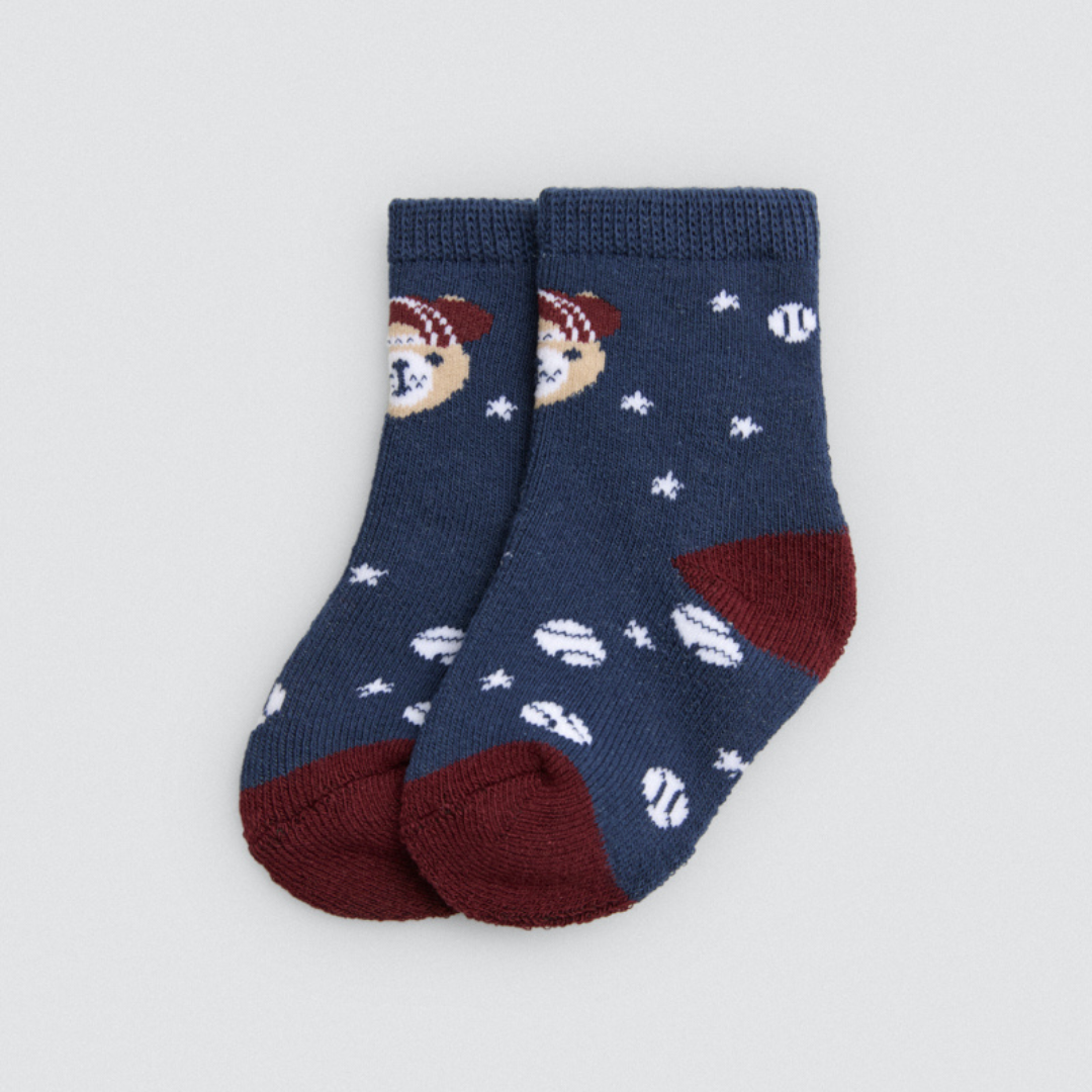 Pack de 4 calcetines estampados para bebé térmicos con puño antipresión.