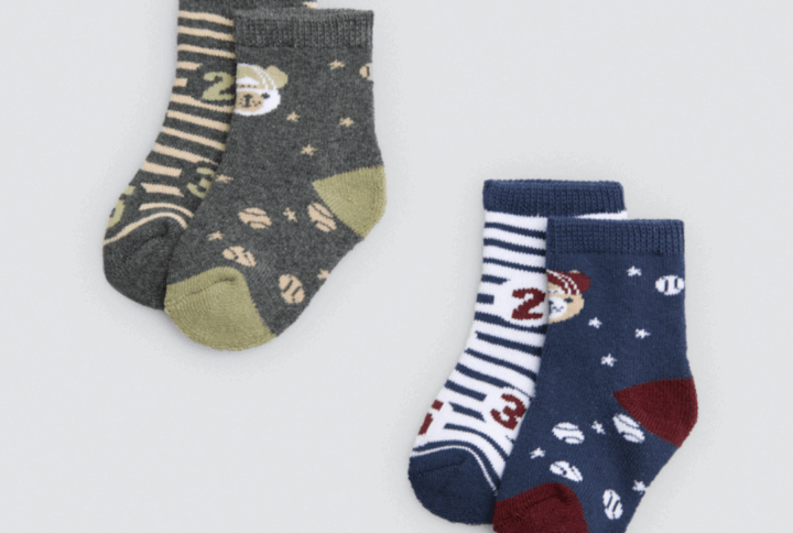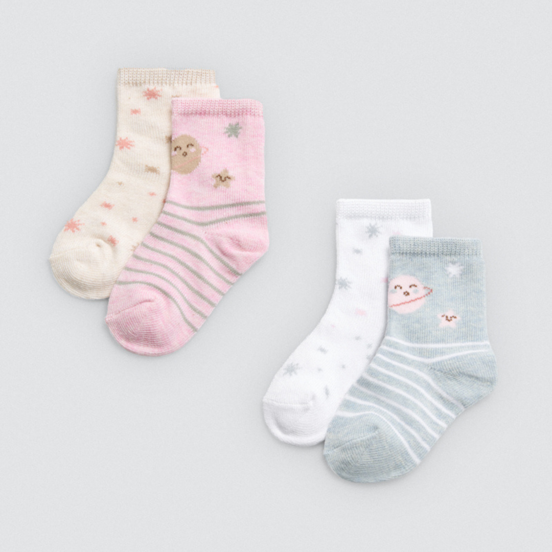 Pack de 4 calcetines estampados para bebé con puño antipresión.