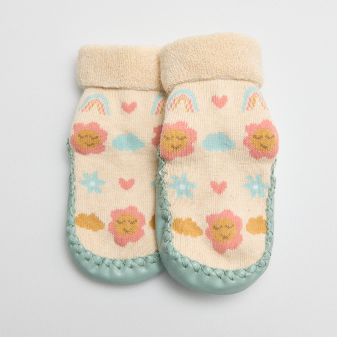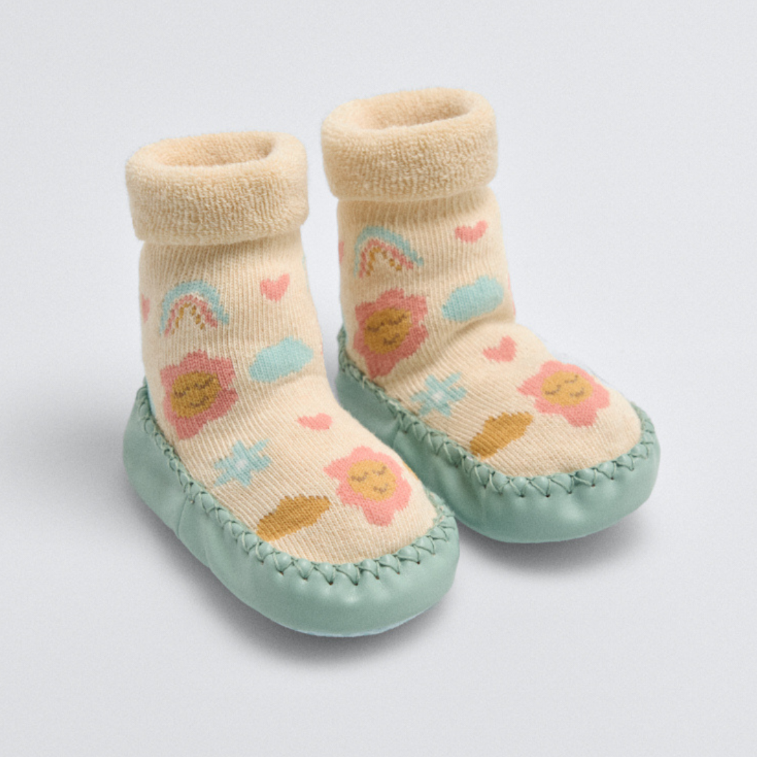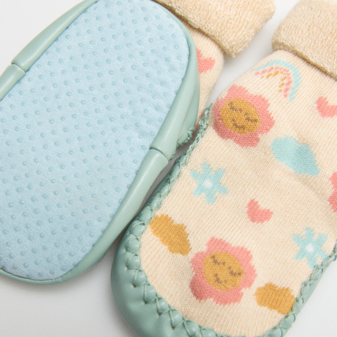 Calcetines zapatilla térmicos estampados para bebé con suela antideslizante y puño antipresión.
