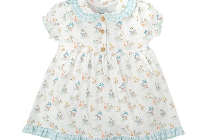 Conjunto formado por dos piezas: camiseta de manga corta en color blanco con botones de madera y detalles de ola en pecho y pantalón corto en color azul con estampado de olas, cordón decorativo y elástico en cintura.