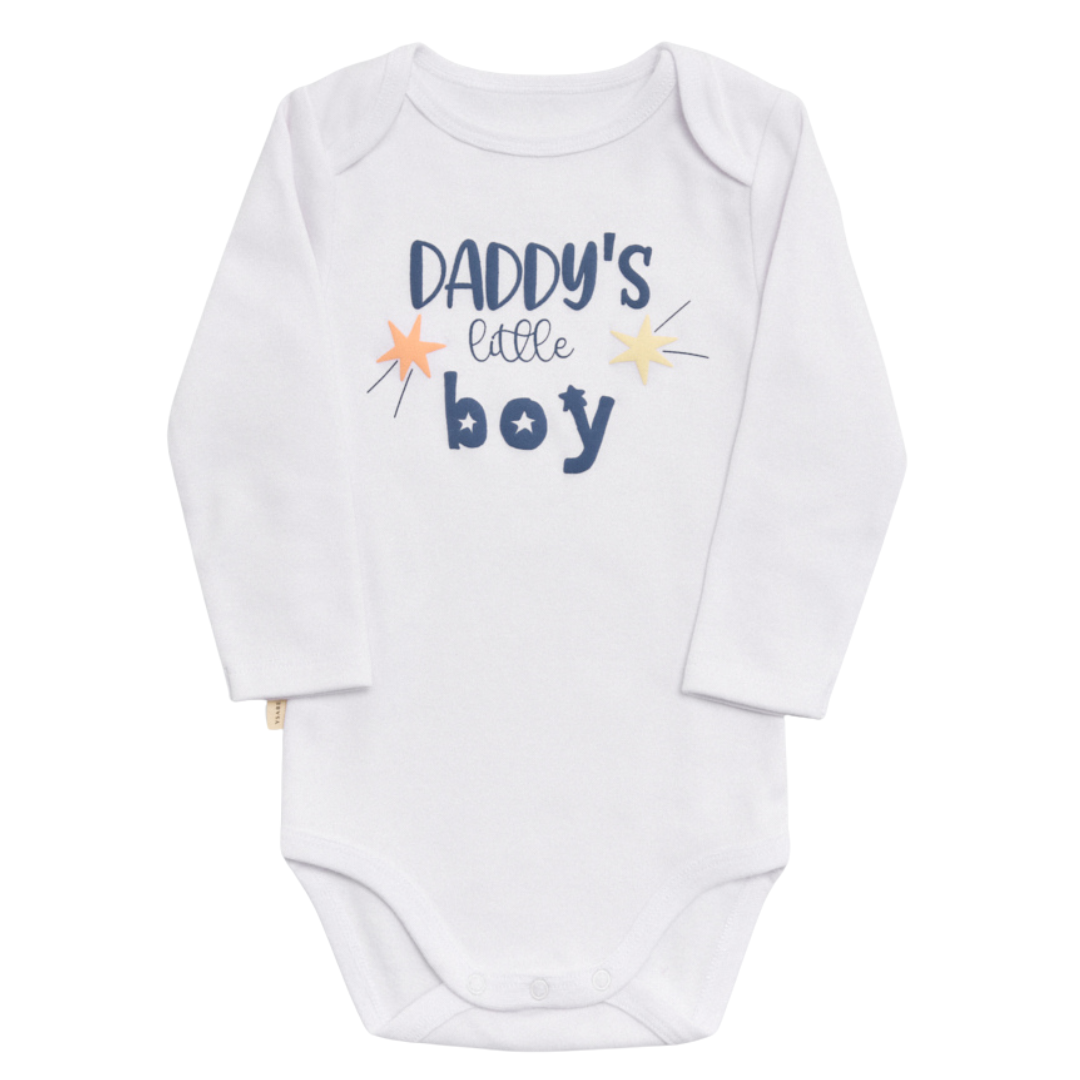 Set de dos body de manga larga para bebé niño con interior afelpado. Tejido de algodón natural con mensajes estampados dulces y tiernos. Suaves, cómodos y perfectos para uso diario o regalar.